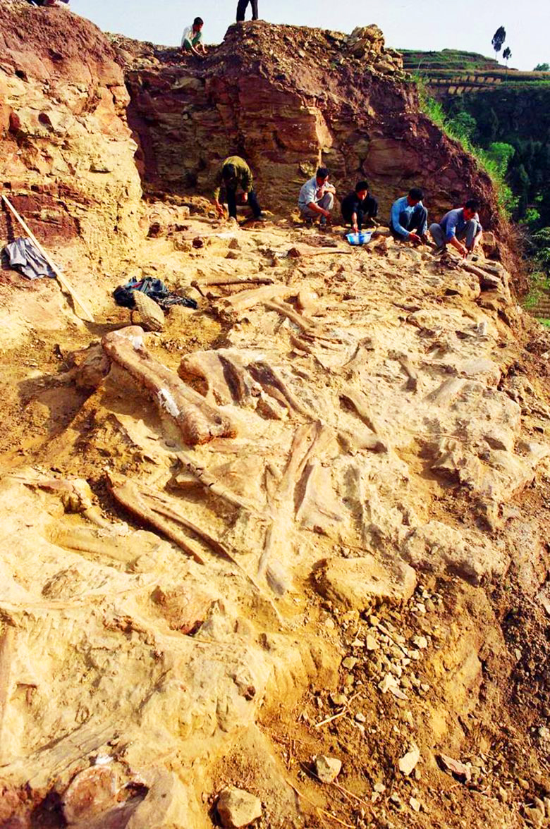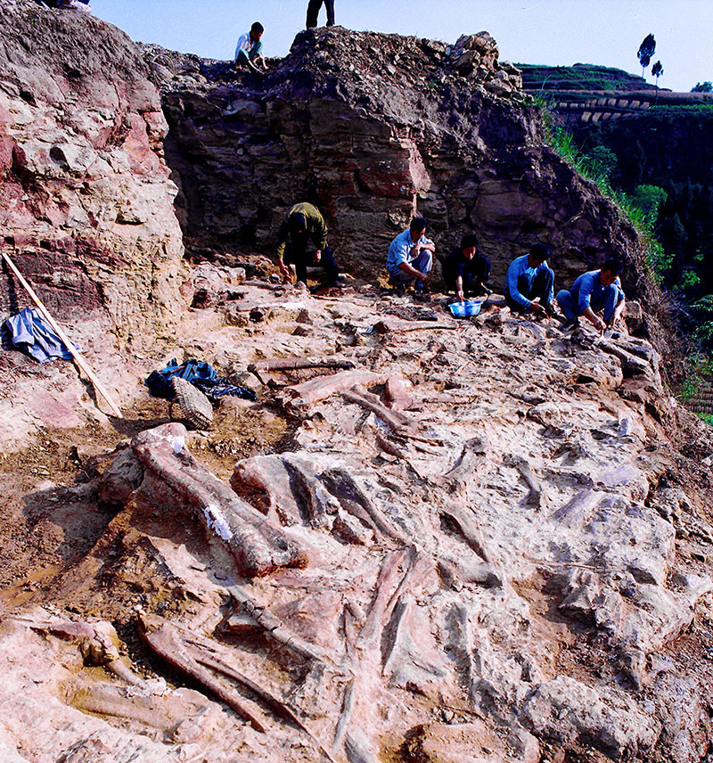青龙山恐龙化石群的地质年代与大山铺恐龙化石群大致相当。在探测性发掘的范围内,化石层叠堆积,连续分布。多数为峨眉龙,还有肉食性恐龙及蛇颈龙的牙齿化石。在方丘湾、胖泥冲一带的砂岩陡壁上,化石层露头随处可见,其出露面积之大,国内罕见。这对于弥补全球中侏罗世恐龙化石较为缺乏,解决大山铺恐龙化石群研究中存在的争议性问题,具有重要而特殊的意义。
